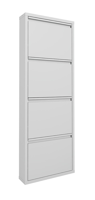 Обувница Практик ОМ-4 белая предназначена для хранения обуви. Обувница состоит из четырех отделений, каждое отделение вмещает 2 пары обуви (до 43 размера). Изготовлена из стали, поставляется в собранном виде. Цвет: белый Ral 9003. Тип покрытия: порошковое