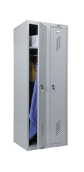 Модульная система локеров Практик ML 21-60 (1500) базовый модуль предназначен для хранения сменной одежды в производственных, спортивных и других помещениях, а также для организации камер хранения. Представляет собой сборно-разборную жесткую конструкцию, усиленную сварной рамой. Собирается в вертикальном положении при помощи зацепов и саморезов. Специальные элементы боковых креплений на боковой стенке позволяет наращивать ряд модулей любой длины. Все модули серии ML совместимы между собой. Базовый модуль МL 21-60 (1500) оснащен улучшенной вентиляцией на дверях и задней стенке. Каждая секция комплектуется полкой для головного убора, перекладиной для вешалок и крючками. Двери закрываются ключевым замком Практик (2000 комбинаций). Открывания дверей правостороннее или левостороннее. Цвет: серый-полуматовый (Ral 7038). Возможен окрас в другие цвета из палитры производителя. Дополнительная опция: замок PL (вместо ключевого замка устанавливается бесключевой замок Euro-locks A129 с устройством под навесной замок). Поставляется в разобранном виде